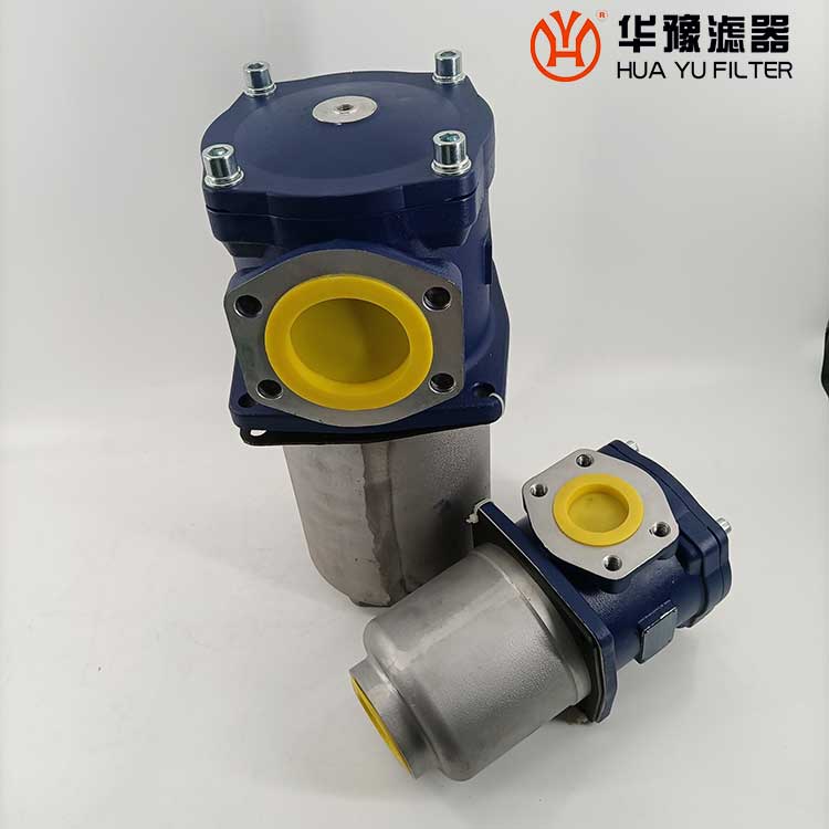 該過濾器的濾芯采用化纖過濾材質,具有過濾精度高,通油能力大,初始壓力損失小,納污量大等優點,并裝有壓差發訊器及旁通閥。當濾芯堵塞到進出油口壓差為0.35MPa時,便發出開關信號,此時應更換濾芯。如果不能馬上停機或無人來更換濾芯,裝在濾芯上部的旁通閥會自動開啟,以保護系統。
