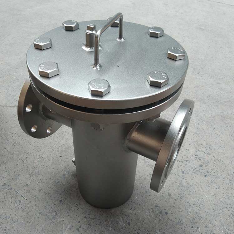 籃式過濾器主要由接管、筒體、濾籃、法蘭、法蘭蓋及緊固件等組成。當流體進入有一定規格的濾網的濾桶后,其雜質被阻擋,而清潔的濾液則由過濾器出口排出,當需要清洗時,只要將可拆卸的濾桶取出,處理后重新裝入即可,因此,使用維護極為方便。籃式過濾器具有結構簡潔,阻力小,排污方便等特點。適用介質可為水、油、氣。一般通水網為18~30目,通氣網為40~100目,通油網為100~480目,可按用戶要求制作濾網,介質溫度:≤200℃。